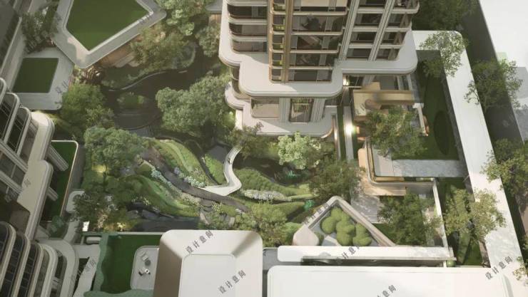 此外,抬板设计与下沉式庭院、挑空露台、空中廊桥、屋顶绿化等元素相结合,可以塑造层次更丰富的立体园林系统,营造出如森林溪谷般的城市山林景观。
