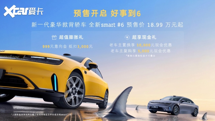 smart精灵6号现已正式开启预售(提供大/小两种电池版本),全国200多家门店的展车,即将陆续到店,马上预订,即可锁定首批权益。期待与“天生爱不同”的密友亲身体验“新一代豪华掀背轿车”的全能魅力与独特个性,共赴smart新奢出行的全新进化!