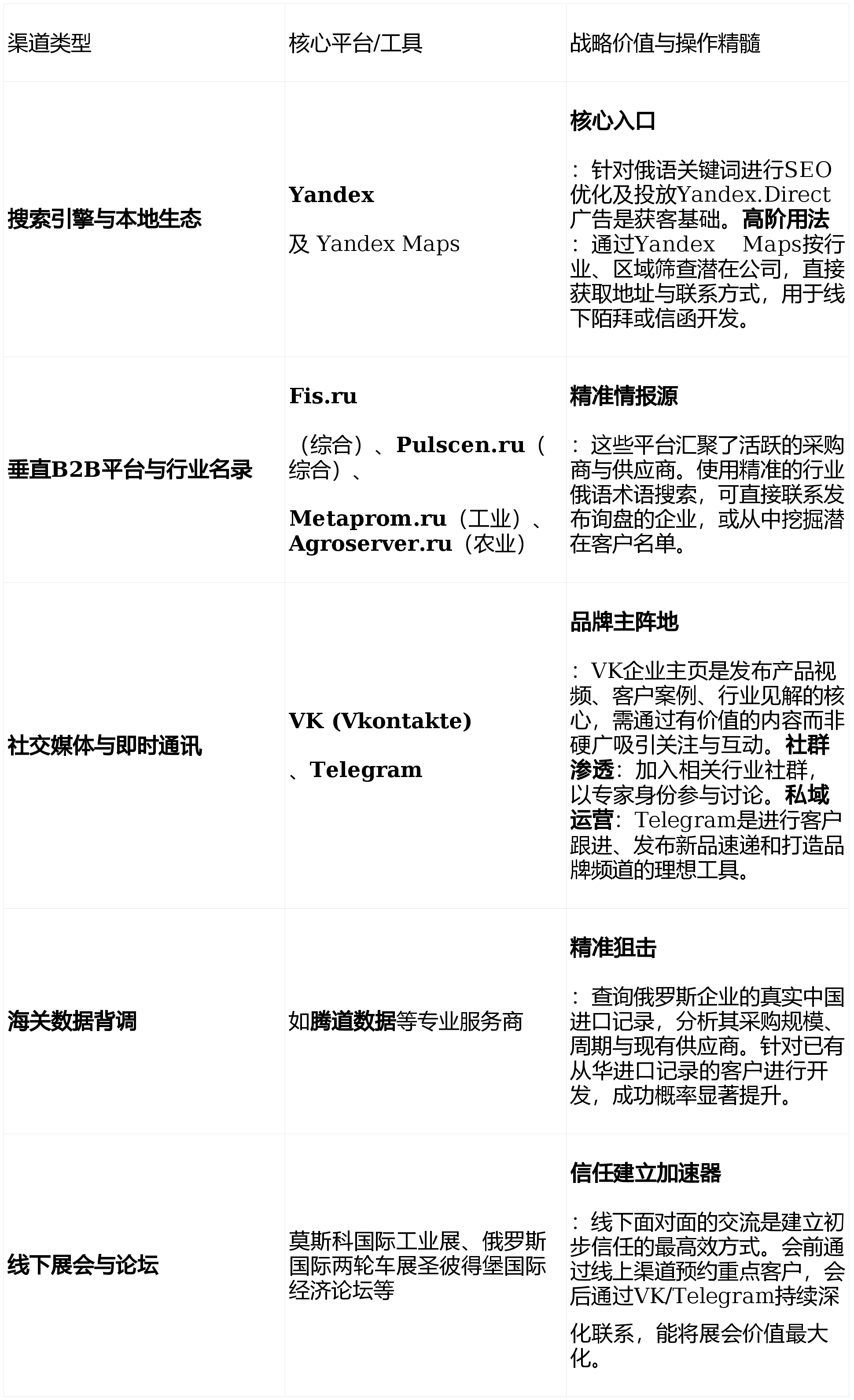 理解了市场底色,下一步是搭建高效的客户触达渠道。以下工具矩阵构成了开发俄语市场客户的“基础设施”。