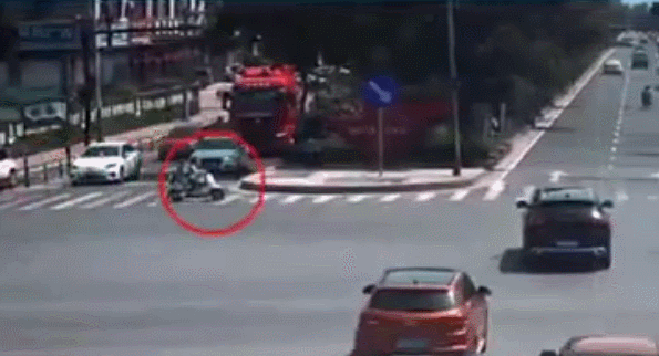 15岁女孩骑行电动自行车搭载8岁弟弟出行,经过路口时闯红灯,与一辆正常行驶的小车发生碰撞,所幸没有受伤。