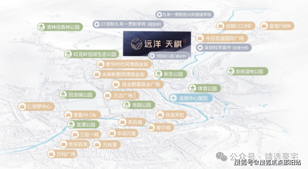 项目规划了9班幼儿园(建设中),和配置有36班九年一贯制书香学府、东兴外国语学校,更是临近全龙岗排名第三的“魔法高中”科高龙岗分校,涵盖了从小学到高中的9+3年全周期学制,实力学府雄厚师资。