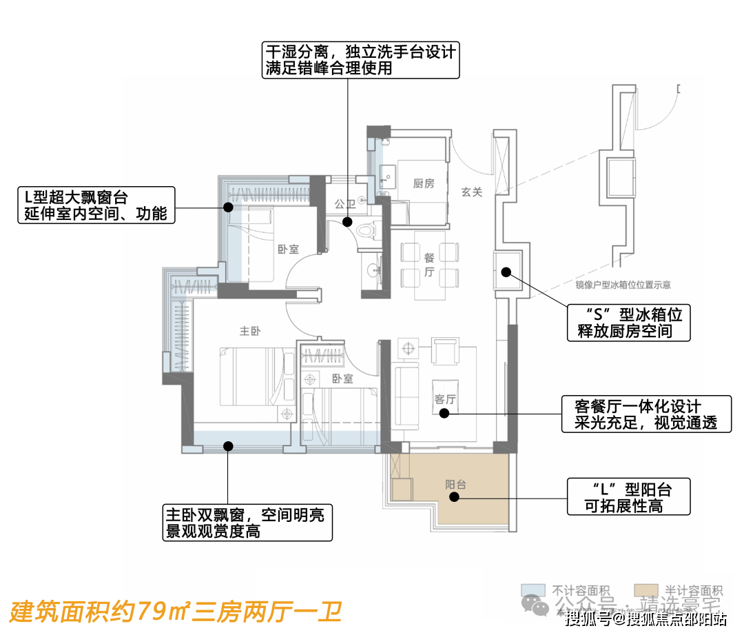 ●深圳少有的建面约89㎡3房2卫户型,客餐厅、主卧南北通透,前后无遮挡;