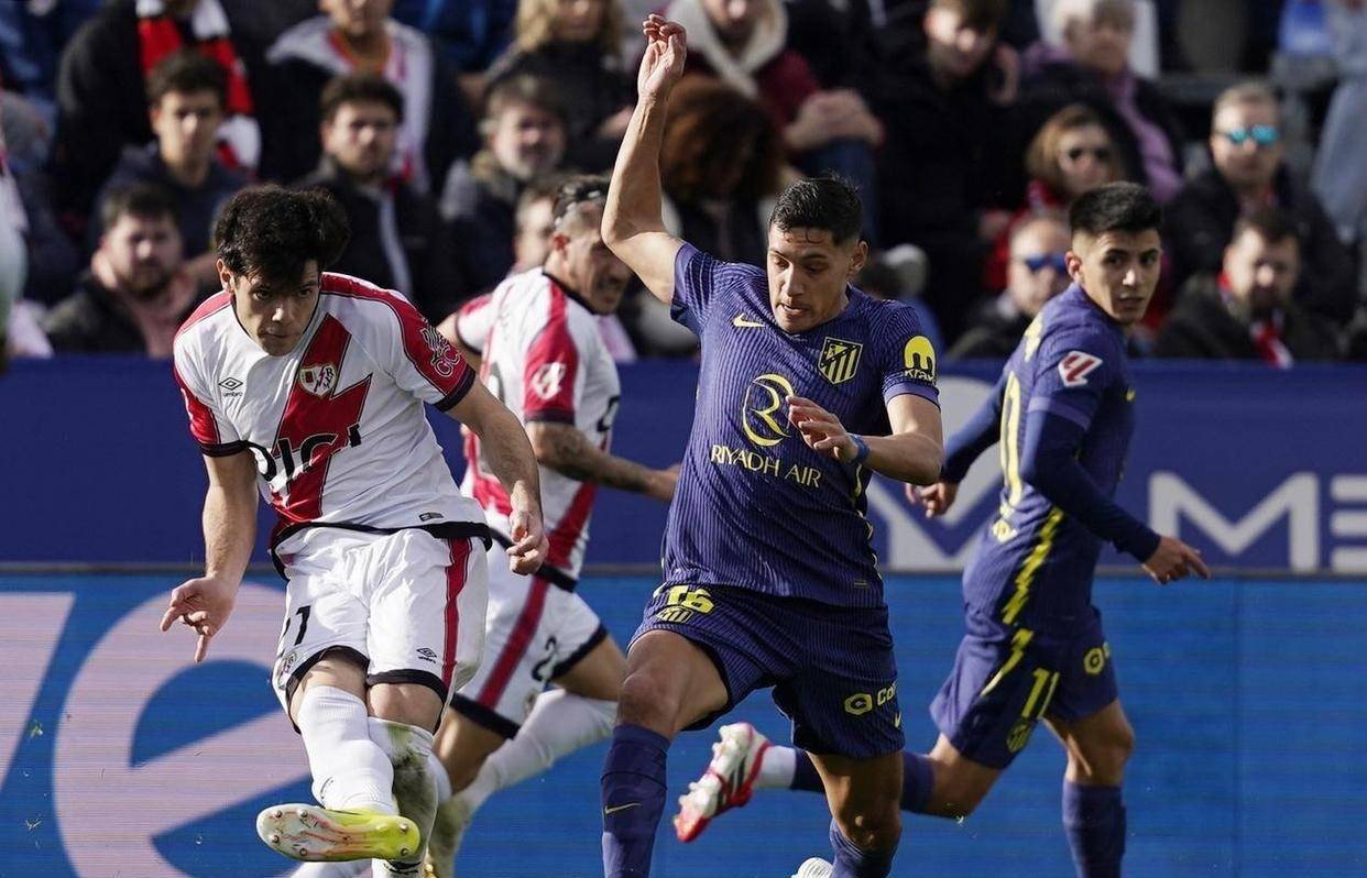 比赛前30分钟还算平稳,马竞甚至有一次射门击中横梁。 但第40分钟,平衡被彻底打破。 巴列卡诺的右后卫拉蒂乌在前场右路接球,连续踩了几个单车过人,轻松突破马竞的防守后下底传中。 门前跟进的弗兰·佩雷斯无人盯防,轻松推射破门,巴列卡诺1-0领先。